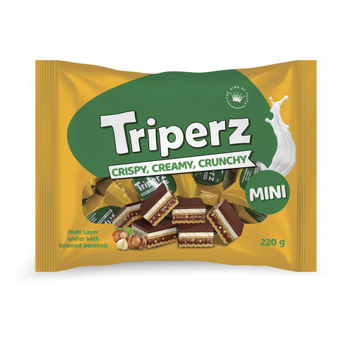 ویفر روکش کاکائویی با کرم شیری و تکه فندق تریپرز زرکام
