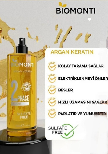 اسپری دوفاز فری سولفات حاوی روغن آرگان و کراتین بیومونتی biomonti