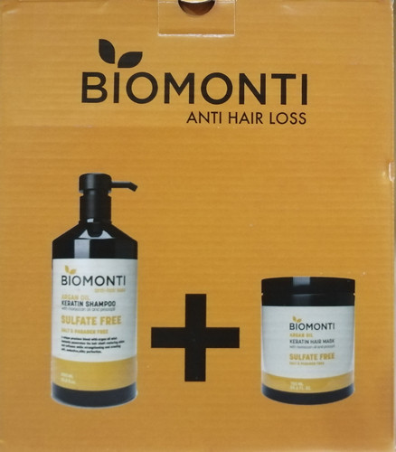 ناموجود کیت ترمیم و ضد ریزش شامپو و ماسک مو بدون سولفات حاوی کراتین و روغن ارگان بیومونتی