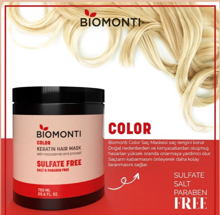 ماسک مو بدون سولفات و نمک کراتینه موهای رنگ شده بیومونتی
