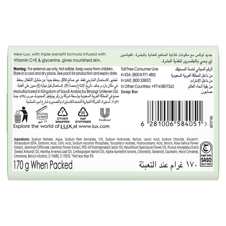صابون نواری جدید LUX Nourished Skin Bar حاوی ویتامین C، E و گلیسیرین است، یک فرمول سود سه گانه که پوست شما را روشن و آبرسانی می کند تا پوستی مغذی نشان دهد. در کف غنی و خامه ای غرق شوید و در حین دوش گرفتن، ترکیب عطری لطیف گاردنیا را تجربه کنید. صابون جدید LUX Nourished Skin Bar اولین قدم شما برای داشتن پوستی معطر و تغذیه شده است. با صابون نواری پوست مغذی LUX به پوست نرم و ابریشمی خود بپردازید. از ترکیب فوقالعاده جوهر ابریشم لذت ببرید و زیبایی خود را با رایحه صابون Nourished Skin Bar تقویت کنید. لایه های مختلف نت ها و مواد تشکیل دهنده عطر زیبا را در صابون LUX Nourished Skin Bar کشف کنید. از ترکیب لطیف گاردنیا با دانه های یلانگ یلانگ و تونکا لذت ببرید. نوار صابون پوست LUX حباب می دهد تا به یک کف مخملی تبدیل شود که احساس فوق العاده ای دارد و پوست شما را تمیز می کند. نرم و مرطوب نگه داشتن پوست برای روتین زیبایی شما ضروری است. با استفاده از صابون پوستی LUX، شستن و مرطوب کردن بدن شما آسان است، در حالی که عطرهای آرامش بخش به شما کمک می کنند آرام و متمرکز بمانید. مانند داشتن یک اسپای شخصی در خانه است که می توانید با رایحه های ملایم استراحت کنید و از کف مرطوب کننده این صابون زیبایی دلپذیر لذت ببرید. چه در حال آماده شدن برای روز خود باشید و چه برای یک عصر آرامش بخش، حمام کردن با LUX یک تجربه لذت بخش و دلپذیر است.
