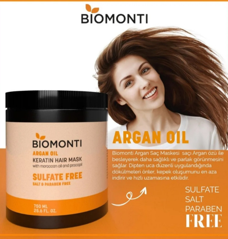 ماسک مو بدون سولفات و نمک کراتینه حاوی روغن آرگان بیومونتی Biomonti
