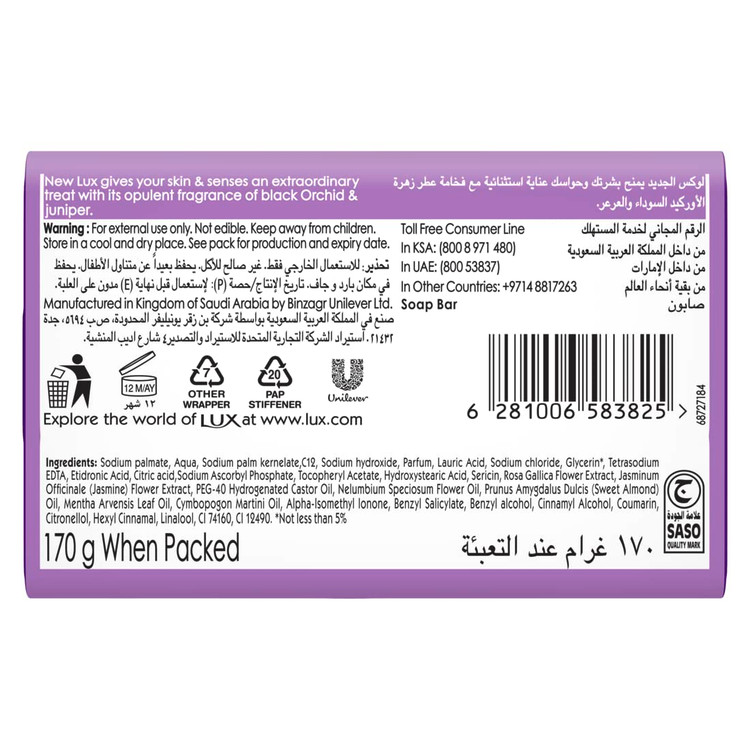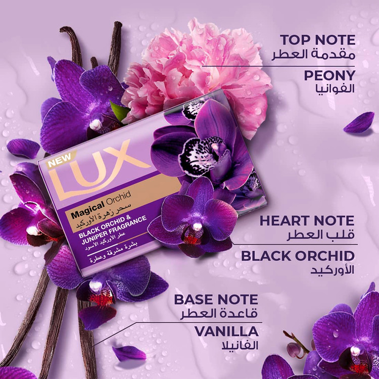 صابون باری ارکیده جادویی LUX با ترکیبی از عطرهای مجلل از ارکیده سیاه و درخت عرعر ترکیب شده است. صابون نواری ارکیده جادویی LUX حمام شما را به یک خوراکی فوق العاده برای پوست و حواس شما تبدیل می کند. تجربه دوش گرفتن حسی با LUX را تجربه کنید که پوست شما را خوشبو و درخشان می کند! رایحه نفیس و ماندگار LUX Magical Orchid را با ارکیدههای کمیاب سیاه مسحورکننده لذت ببرید و پوست خود را مدتها پس از دوش گرفتن معطر کنید. طراوت را با صابون نواری ارکیده جادویی LUX که با روغن درخت عرعر و ارکیده سیاه ایجاد شده است، تجربه کنید. ترکیبات اصلی آن اثر آنتی اکسیدانی و آرام بخش بر روی پوست دارد. صابون LUX یک کف غنی تشکیل می دهد و به آرامی پوست را تمیز می کند و آن را با رایحه ای لذت بخش پر می کند. بوی بد، کثیفی و چربی را از روی پوست پاک می کند و آن را مرطوب و صاف می کند. در LUX، ما معتقدیم که زیبایی یک زن نباید در اختیار کسی جز خودش باشد. او باید بتواند زیبایی و زنانگی خود را هر طور که می خواهد، بدون عذرخواهی بیان کند. بنابراین مراسم حمام کردن با LUX به زنان لحظه ای قدرتمند از مراقبت از خود می دهد که به پرورش قدرت درونی آنها کمک می کند. این امر زیبایی زنان را به یک زره تبدیل می کند، منبعی مثبت از قدرت و قدرت برای بازیابی زیبایی خود و بالا رفتن از قضاوت.