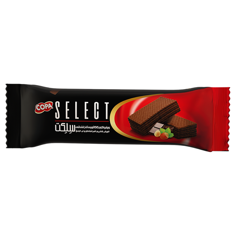 ویفر با کرم کاکائویی تلخ فندقی 7 لایه سلکت کوپا
